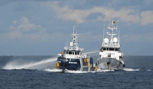 تصاویر و ویدیوهای منتشرشده توسط گارد ساحلی فیلیپین نشان میدهد که یک شناور چینی با توپهای آبپاش در حال تعقیب کشتی فیلیپینی است.