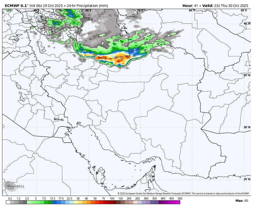صادق ضیائیان، رئیس مرکز ملی پیشبینی و مدیریت بحران مخاطرات وضع هوا سازمان هواشناسی کشور در گفتگو با خبرنگار مهر با تشریح آخرین وضعیت جوی کشور گفت: امروز (پنجشنبه، ۸ آبان) علاوه بر تشدید بارشها در سواحل دریای خزر، در استانهای اردبیل، خراسان شمالی، شمال زنجان و قزوین و نیز ارتفاعات استانهای البرز، تهران و سمنان بارش پراکنده، رعد و برق و وزش باد شدید موقتی پیشبینی میشود.